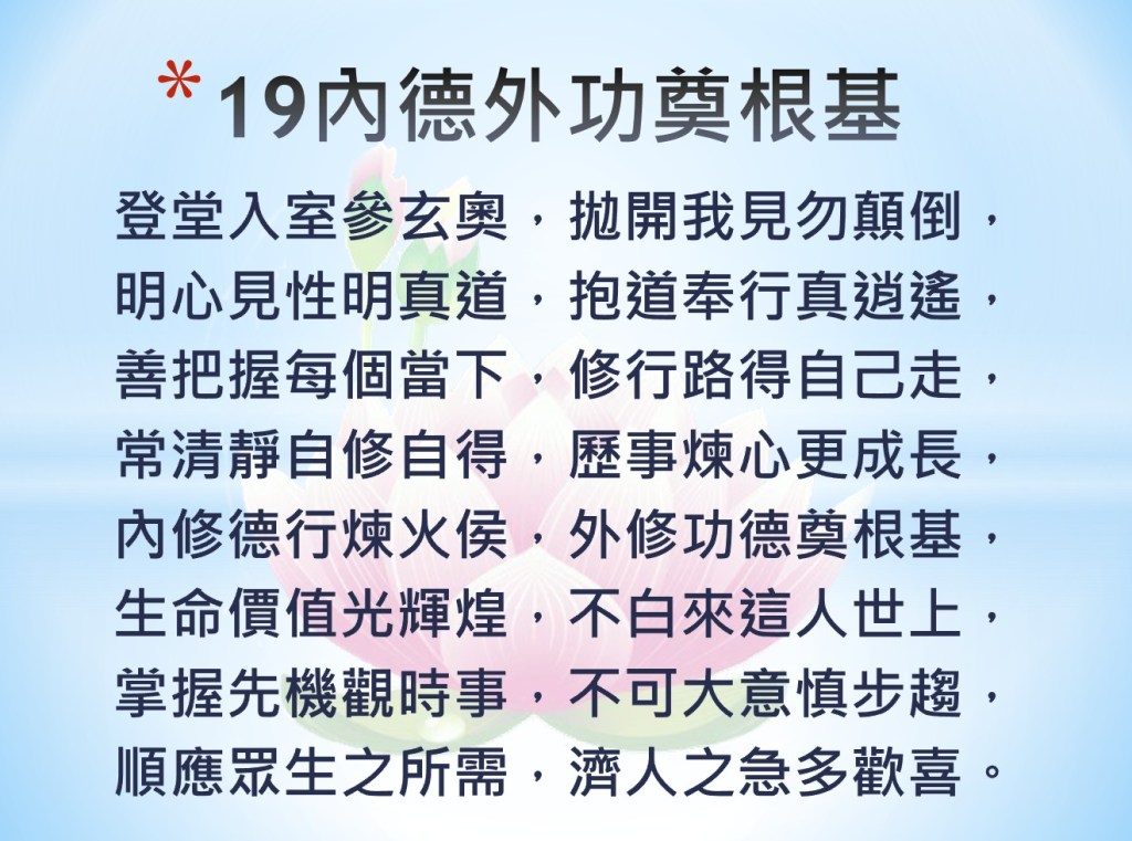 仙佛聖訓 快歸鄉 第十九篇 內德外功奠根基 摘記 圖片2021 年 09 月 01 日 aly7147發表留言 分享此文: 按一下以分享至 Facebook(在新視窗中開啟) Facebook 按一下即可分享至 X(在新視窗中開啟) X 喜歡 正在載入... 相關