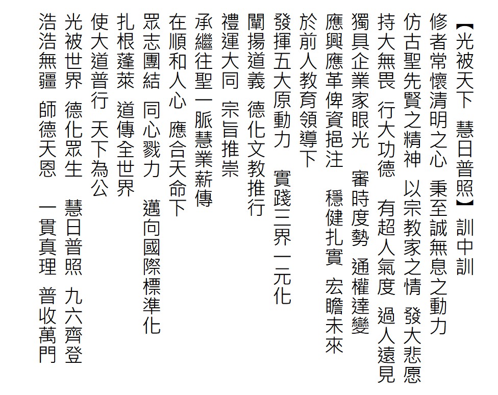 韓湘子 大仙慈訓【力行箴】 夫!天下無不可成之事, 所貴在力行,行心如日月, 恆誠無止息,肝膽照千秋。 然 坐而言,不如起而行, 言而不行,豈足以功成。 聖云:不積跬步,無以至千里。 一點一滴,一步一印,所羨千里途。 行乎正身,弗迷真逐妄 習氣染。 行乎正智,弗顛倒夢想 俗念纏。 行乎正見,弗拘泥執囿 四相障。 行乎正道,弗徇私偏倚 昧天良。 願諸君,皆正其誼,且不謀其利, 明其道,豈不計其功。 無為善舉,實乃義之決,行之極也。 負任重而道遠,以上友千古完人, 下開萬世偉業,捨我其誰矣! 行之!行之!頗眾之益,實不可等閒視之矣!