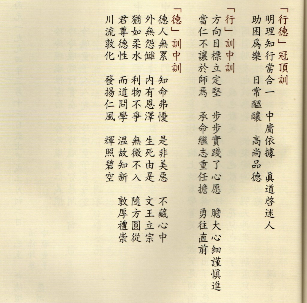 @得一善則拳拳服膺,(眀辨)擇善固執,誠心抱守道心。@擇乎中庸(中和之道)即是智慧,居處不擇仁,焉有智。@境教>孟母三遷,知止>可以人而不如鳥乎!@知進退存亡,而不失其正,其唯聖人乎?@知進退者為英雄,識時務者為豪傑。@天行健,君子自強不息。(剛強勇)>無慾則剛勇。@志向越強,身體就越強。(志者氣之帥),氣行則血行。@知人者智,自知者明,勝人者有力,自勝情慾者強。@君子存心>寬柔以教,不報無道。@君子和而不流.不同流合污,和光同塵,出汙泥而不染。@三曹棟樑>富貴不能淫,貧賤不能移,威武不能屈。苦其心志,勞其筋骨,餓其體膚,空乏其身,行拂亂其所為,所以動心忍性,增益其所不能。@自強>勇猛精進,好學不倦,誨人不倦,不知老之將至。@靠山山倒,靠人人跑,靠自己最好。浩然正氣好辦事。@身體健康是最大的財富>心平身安>靈性主宰更安心。@正氣存內>邪不可干。內剛外強>大勇、大智、大仁。@內心寬厚>前程遠大。內心有道>行誼中正(遵道而行)。@平常心就是道,佛菩薩不捨眾生>願當眾生馬牛。@半途而廢>成功是給堅持到底的人,恆心毅力不可少。@窮究天地神妙造化,不容易啊!@以有限生命追求無涯知識,有智慧否?@及其至也,雖聖人亦有所不能焉。佛不能渡,唯人自渡。@飯要自己吃,路要自己走,道要自己修。@師父領進門,修行在個人。@君子之道造端乎夫婦(人道);及其至也察乎天地(天道)。@人之為道而遠人,不可以為道。道化家人、道化世人。@忠恕違(離)道不遠。@君子之道>事父(孝).事兄(悌).事君(忠).施朋友(信)。@君使臣以禮,臣事君以忠。(禮、義、廉、恥)>國四維。@言滿天下無口過,行滿天下無怨惡。(謹言慎行)。@君子欲納於言,而敏於行。敏則有功。恭寬信敏惠。@教然後知困,學然後知不足。@勇猛精進(渡懈怠)>君子自強不息。@君子先行其言,而後從之。坐而言不如起而行。@子者>了一也,了覺歸路>恢復本來面目。@真知>多參悟自性的竅妙、多學習聖人的道。@君子素其位而行。不在其位,不謀其政 (管理眾人之事)。@正己而不求於人(自我管理),君子居易以俟命。@君子思不出其位。真性常住可矣。素富貴,行乎富貴。@君子無入而不自得焉!天地悉皆歸。@隨遇而安,隨緣而行,自在自得。@自得>隨心所欲而不逾矩。@不惑、知天命、耳順(聲入心通)。@窮則獨善其身,達則兼善天下。@自己做正,不必去責求別人,(躬自厚而薄則於人)。@無過便是功,無怨便是德。@花若盛開,蝴蝶自來;你若精彩,天自安排。@行遠必自邇,登高必自卑;千里之行,始於足下。